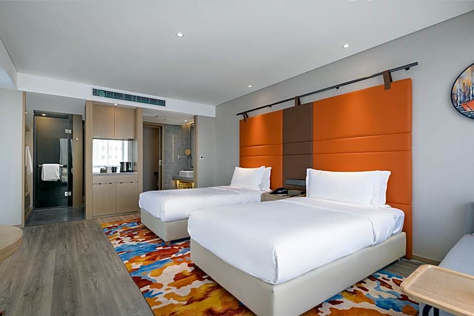 This twin room's standout feature is the hot tub. Offering free toiletries and bathrobes, this twin room includes a private bathroom with a walk-in shower, a bath and a hairdryer. The spacious air-conditioned twin room offers a flat-screen TV with cable channels, soundproof walls, a mini-bar, a seating area as well as city views. The unit has 2 beds.